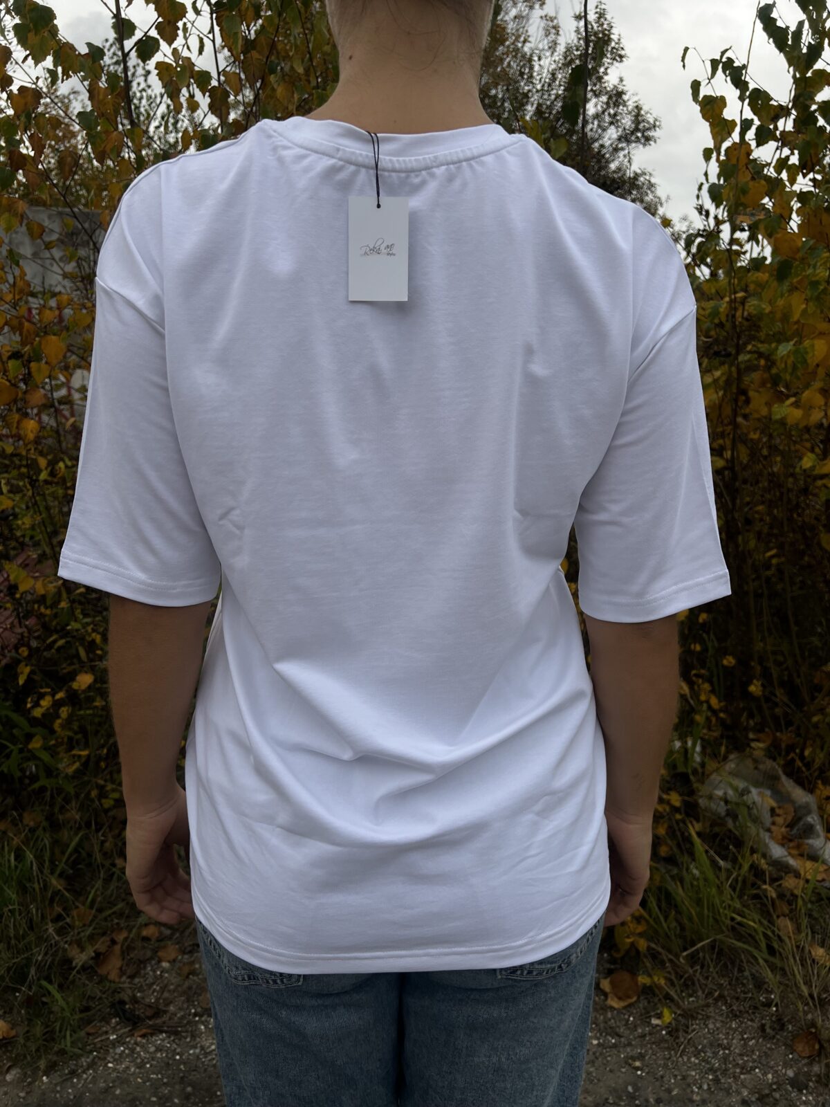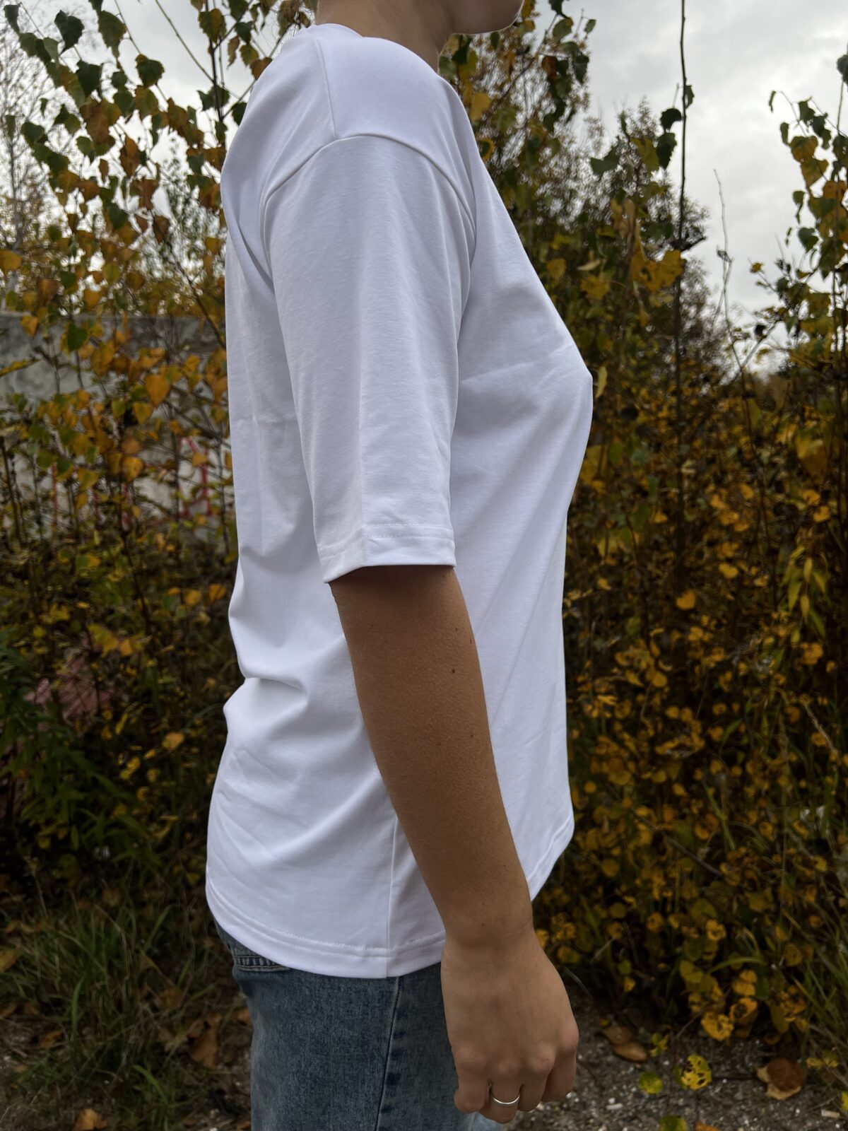 Moje velikost je XL, zde jsem volila L a sedí skvěle! Materiál je moc příjemný a tričko má krásnou zářivou bílou barvu. Líbí se mi delší rukávy a kvalita , tričko vypadá pěkně s kalhotami i se sukní. Jsem moc spokojená.